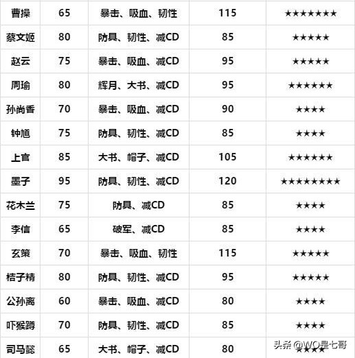 3、实用等级介绍:1-2星可有可无,3-4星参考范围,5-6星阵容核心,7-8星阵容必备,9星百搭神器;