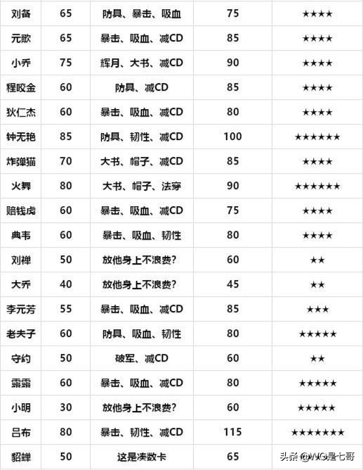5、全场唯一一个无法计算3星全物战力的卡:孙膑,原因是大招看时机,如果机时不对完全没有用,如果时机刚好,可以说只要不被秒全员瞬间回很多血。