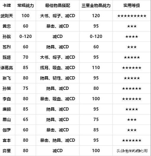 2、实用等级越高,说明作用越大(评定标准由卡牌数量、羁绊系统、阵营加成等多个方面来进行评估);