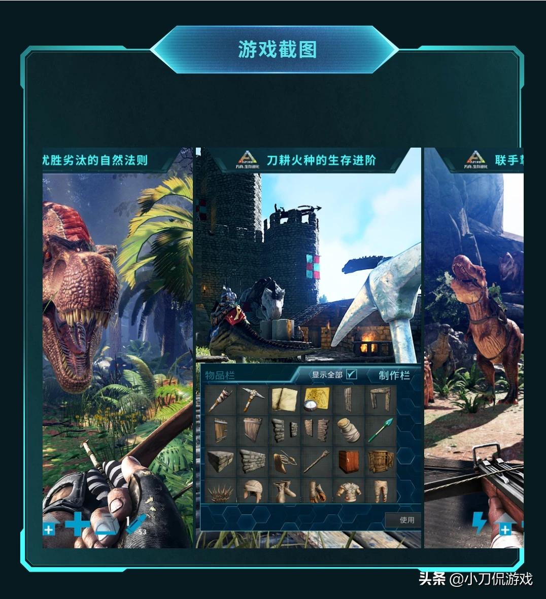 《方舟生存进化》故事主要讲述一群人醒来便出现在神秘海滩,为了生存而探索远古开放世界,玩家需要通过合作/竞技来获取生活必需品。人类需要打猎、收获、研究技术,甚至要根据动态天气变化(酷热白昼、冰冷夜晚)搭建住处,而危险的远古动物会随机出现威胁人类生存。