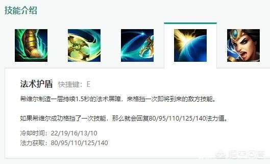 希维尔的E技能可以抵挡一次敌方英雄的技能,相对于一个免费的盾,无限火力中的E技能升到满级的话,冷却时间仅仅两秒,持续时间1.5秒,只要操作稍微好一点,配合上小小走位,希维尔想死都难。