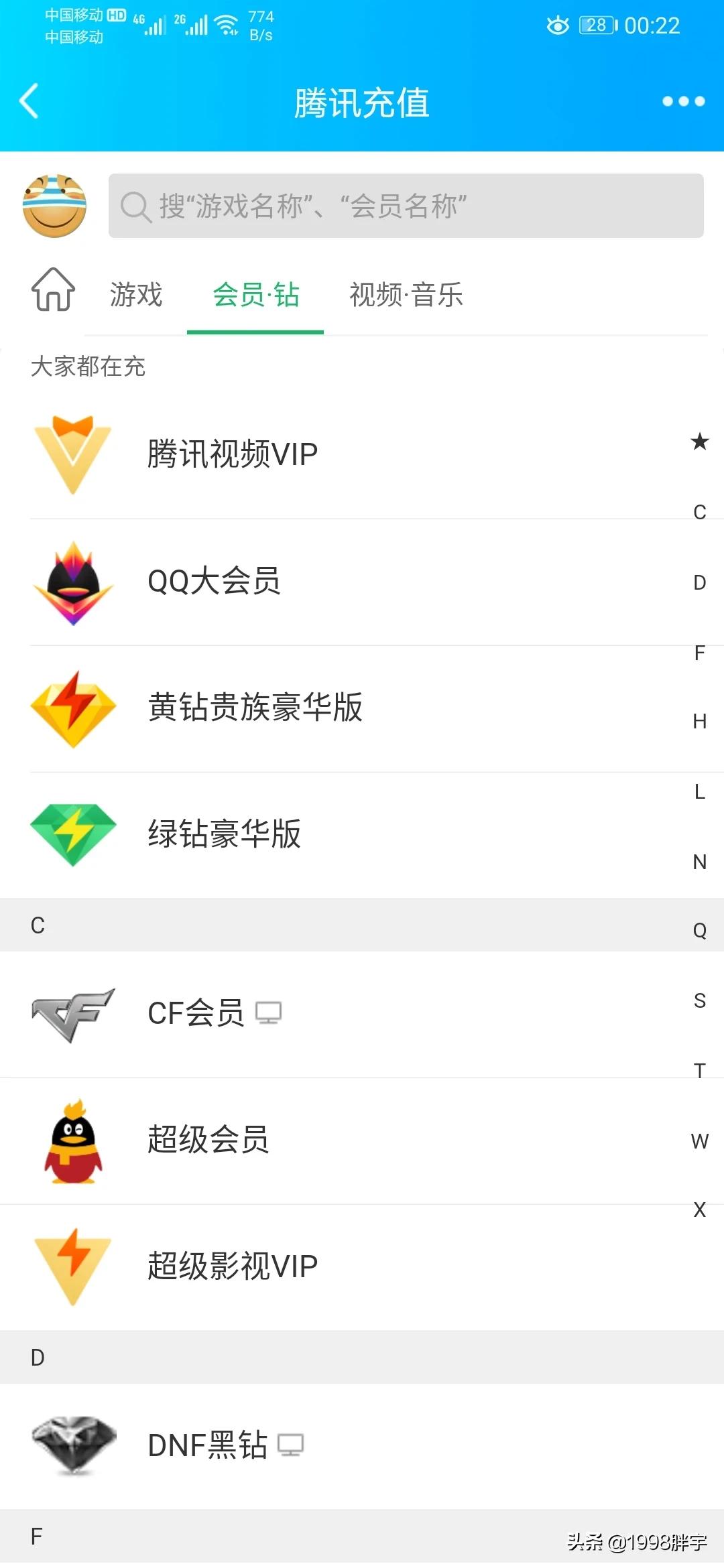 ②点击冲Q币进去就能看到自己的QQ头像然后点下就可以看到自己所开通的业务明细
