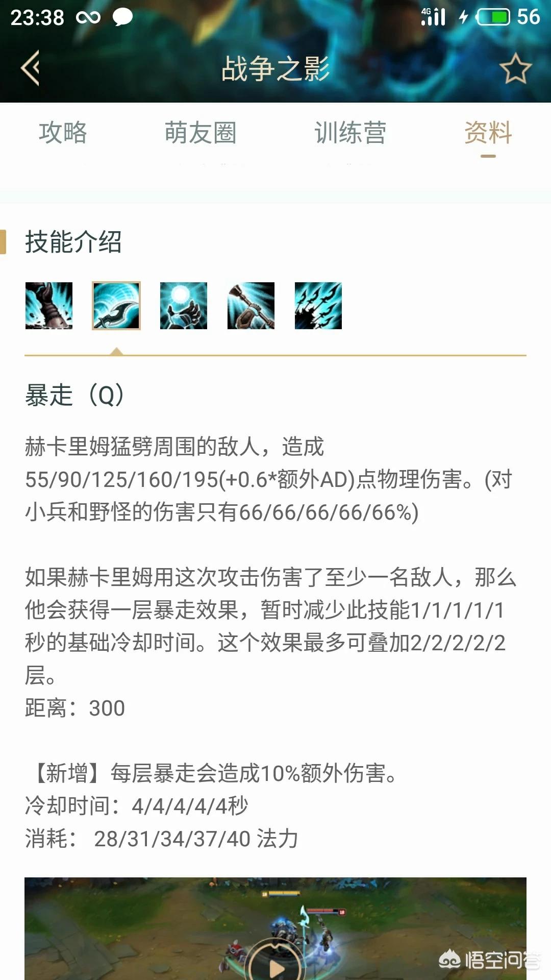 武器:武器是一个非常强势的英雄,单挑基本无敌,不管是e的反击风暴还是q技能的跳斩,都是他杀人越货,以及逃跑的必需之处了,用q技能躲避人马的e技能,这个要看实际上的自己的操作了。