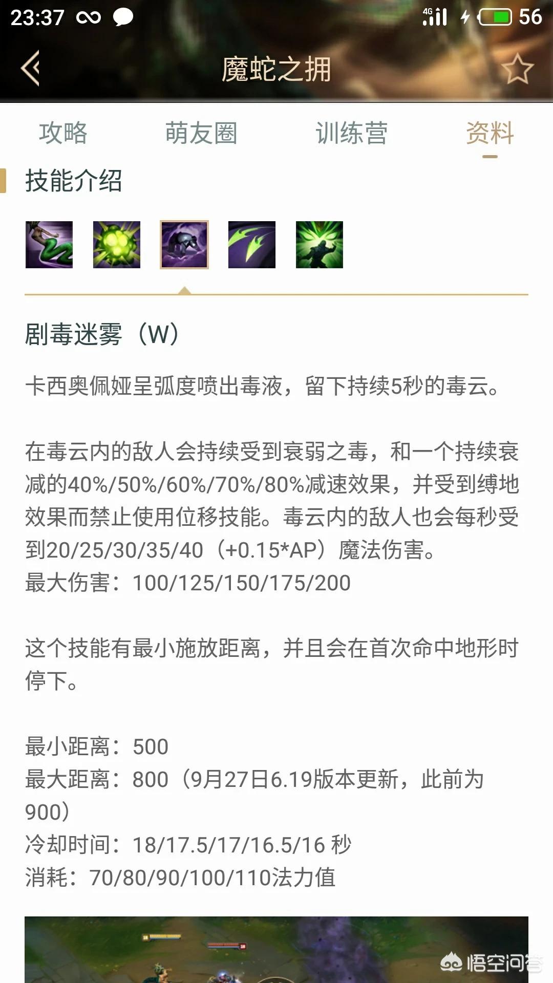 首先看技能,蛇女在历代重做里都少不了一个机制,就是e的回血效果。现如今的蛇女只要对带有中毒效果的单位释放e技能都会回血。