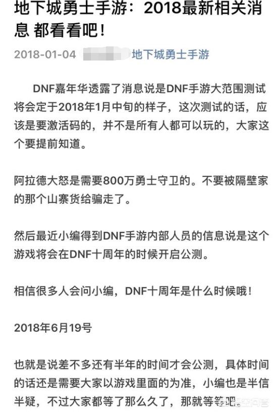 年复一年,日复一日,DNF手游的消息一直牵扯了勇士们四个多年头,一次次的让大家燃起了希望,又一次次的让希望的气泡破灭!