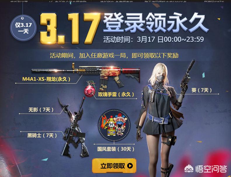 基本上每周都有活动的,都是登陆游戏打一局,当天就可以去官网的活动页面免费去领了。还基本都是以前买不到的永久武器,所以完全够用了!我现在基本都是做做活动领领枪。
