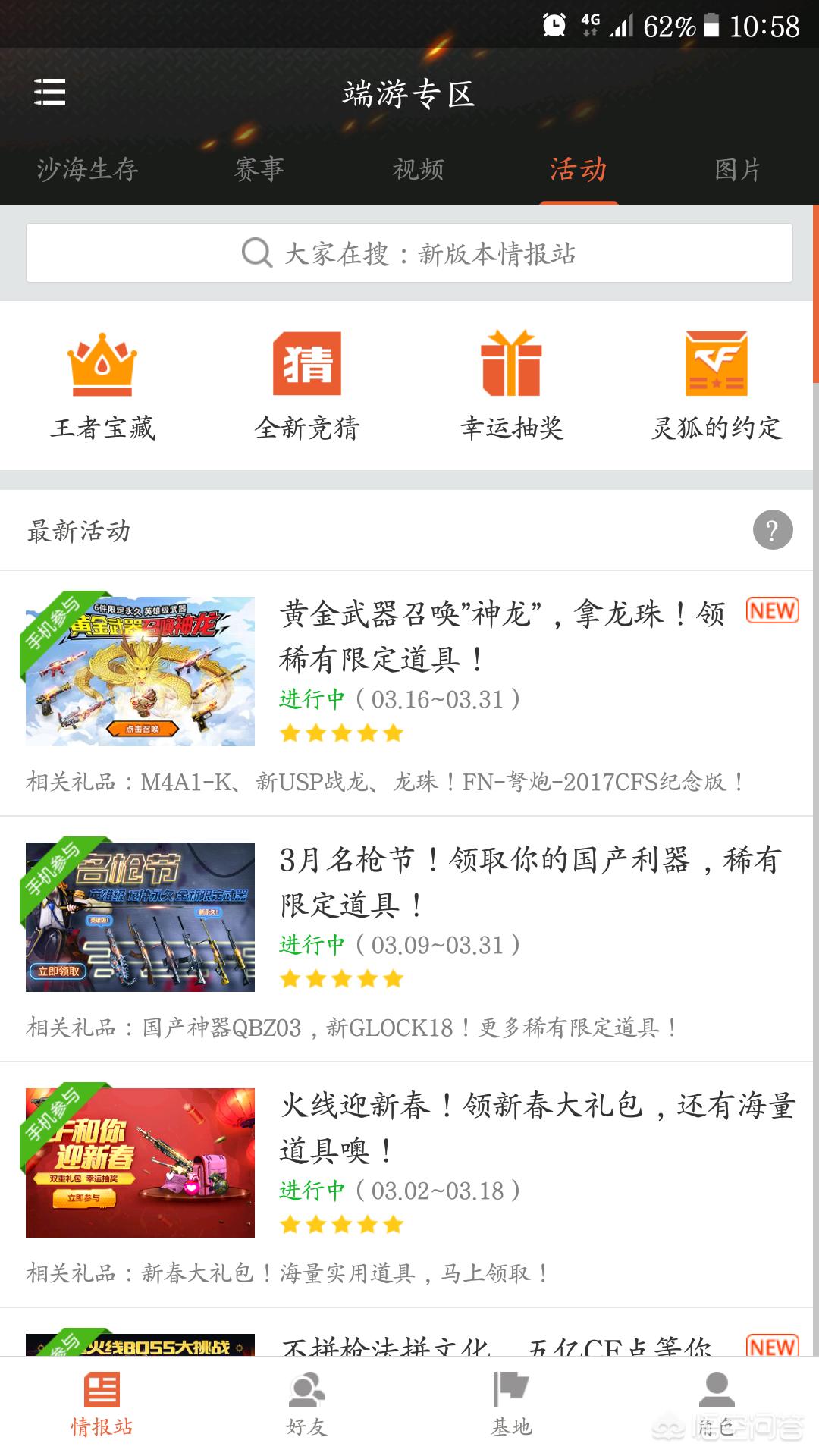 二、自己最好下载掌上穿越火线,每天可以打开手机浏览浏览,上面半括了官网上的所有活动,而且有掌上穿越火线专属活动,这样基本上大小活动都可以随时掌握。