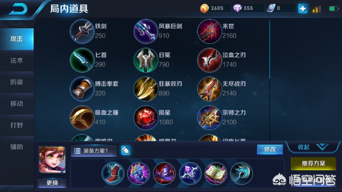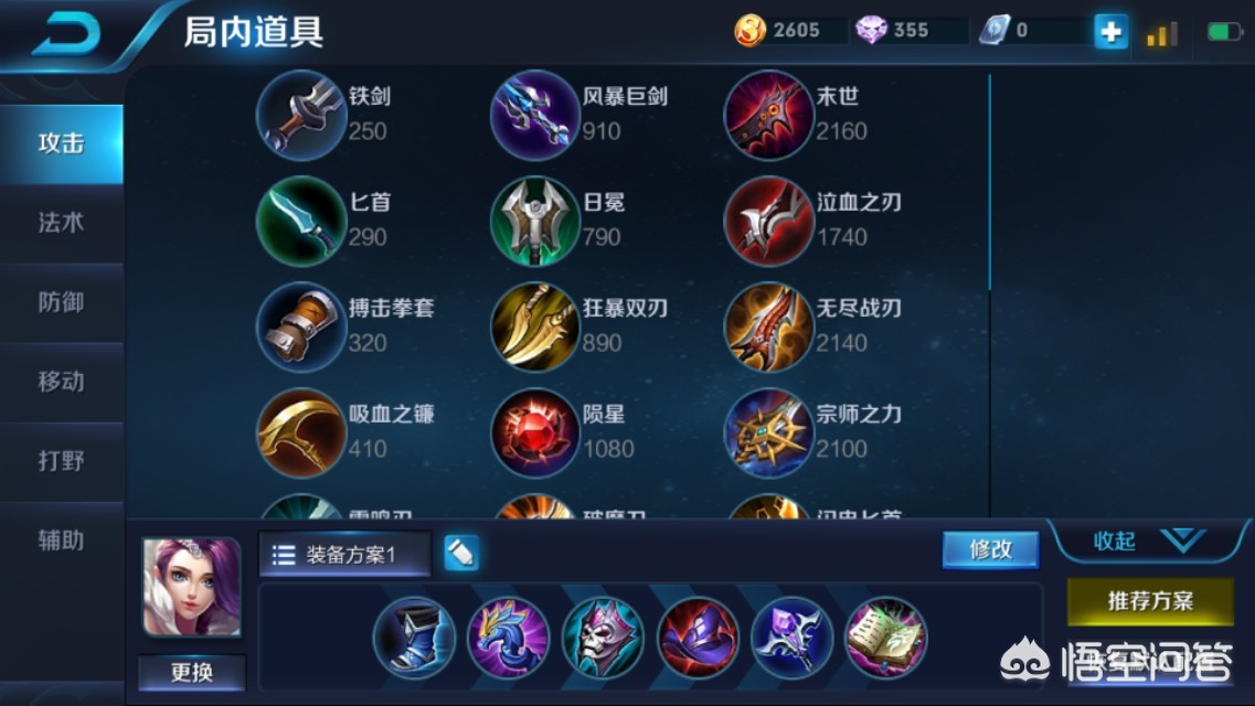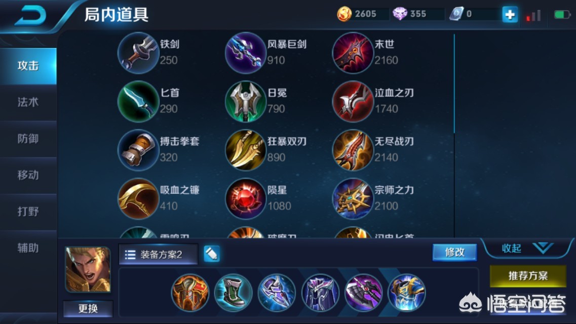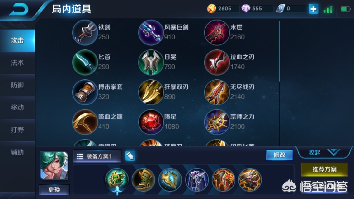 出装推荐二:纳什之牙、干扰水晶、羊刀、巫妖、纳什之牙、帽子