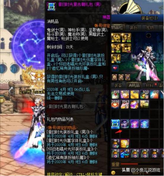 DNF在100版本玩家们可能都忙着升级呢,不过我们也要看看100版本最新上线的一些小礼包,这个昔日时光复古礼包还是挺不错的,主要是价格不算太贵,包含的东西比较多,算是一个性价比比较高的礼包吧。