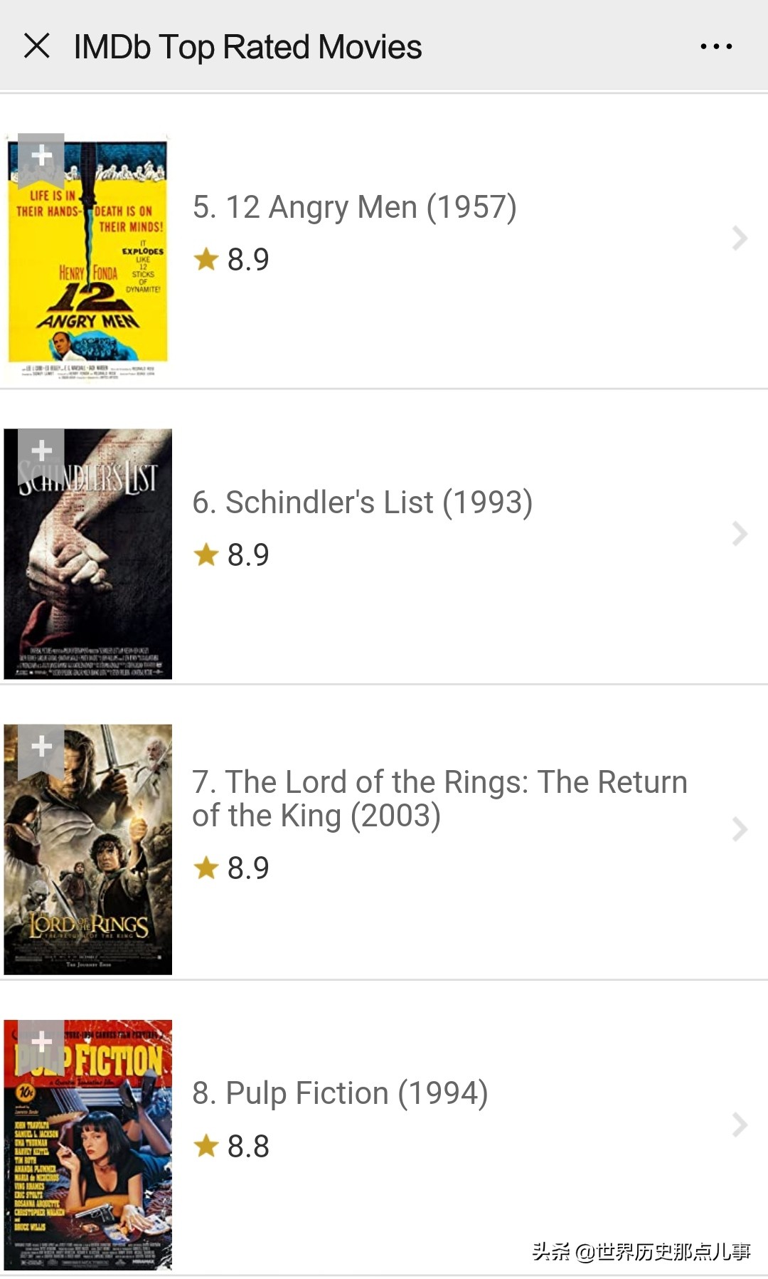 鉴于提问者没有给出评分的主体,我就以美国著名的影视平台IMDb为标准,选取了他们的网友评选出来的有史以来得分最高的10部电影。以下是影片名单及我的观影结果。