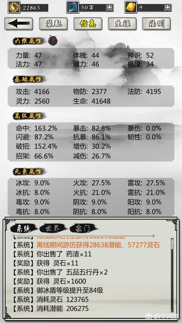 与上面一款游戏相比,这款游戏会更加的丰富而复杂,游戏同样是以打坐吐纳获取修为,玩法方面更加偏向于冒险闯关,有各种不一样的地图和副本,玩家们可以通过探索获得灵石与修为点以及材料,用于升级装备、技能灵根等,而门派方面这款游戏做的很丰富,随着境界的不断提升,你也可以加入更强大的门派,甚至是你可以自己创建门派等。