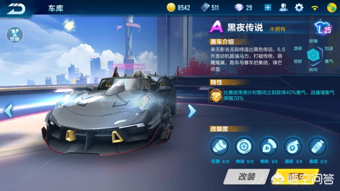 而黑夜传说外形是兰博基尼跑车造型,很多主播都在用,因为车身漂移特别轻便细腻,改装之后配合天赋跑起来感觉很舒服。而它的被动最主要的是撞墙触发被动保留氮气,开车撞墙很平常吧,关键位置撞墙触发被动集气反超车。这么多主播喜欢也很正常。