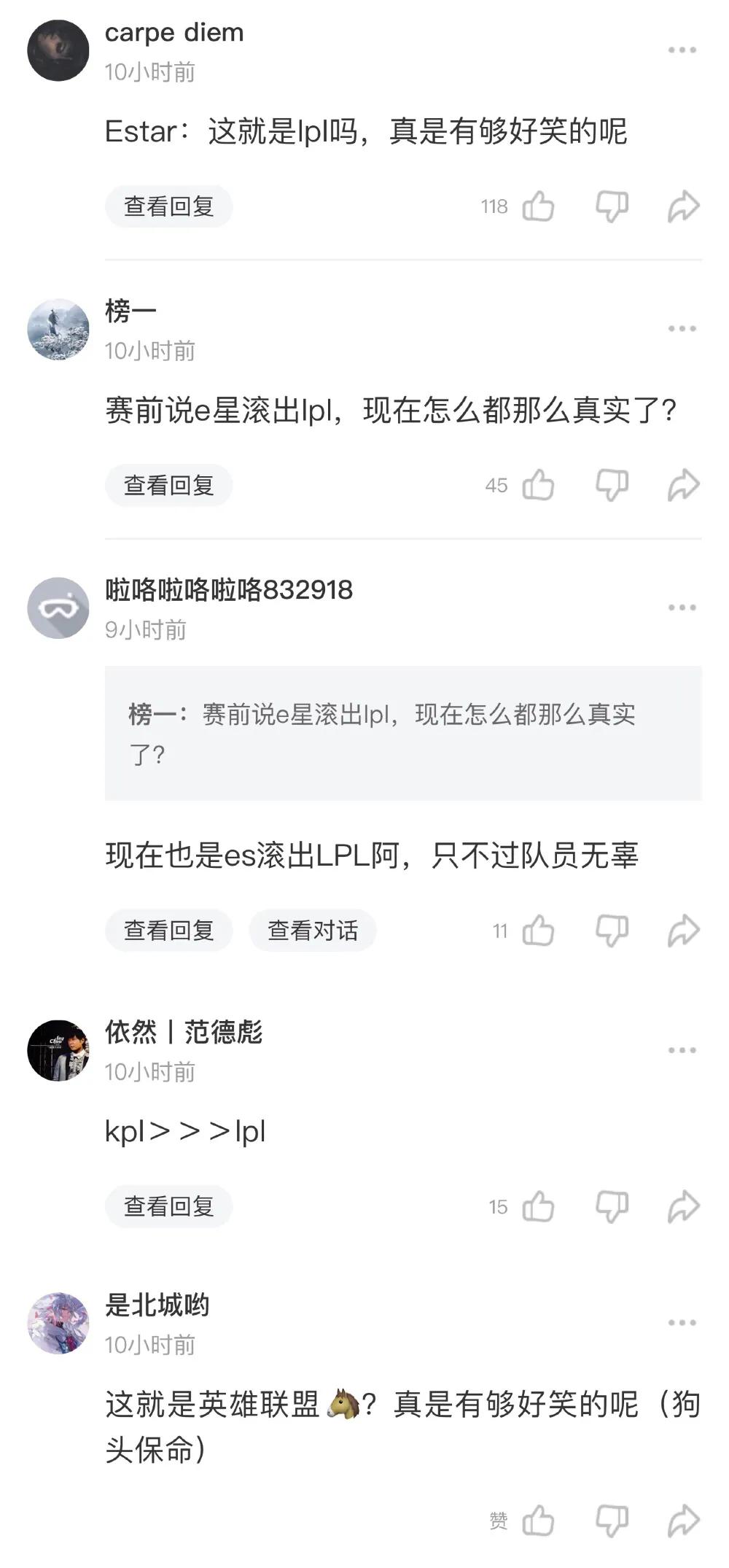 eStar三连胜冲上LPL春季赛战队积分榜首,网友开地图炮称“KPL>LPL”,召唤师你认同吗
