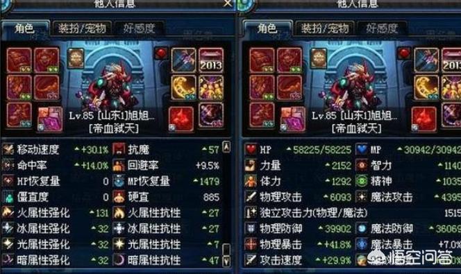 4. 火热的85版本:在DNF的85版本中,异界装备依然很强力,但是已经出现衰落的迹象了,从截图中我们可以看到,宝哥的装备依然没有啥变化,只是手镯部位发生了变,他用的是金手镯。