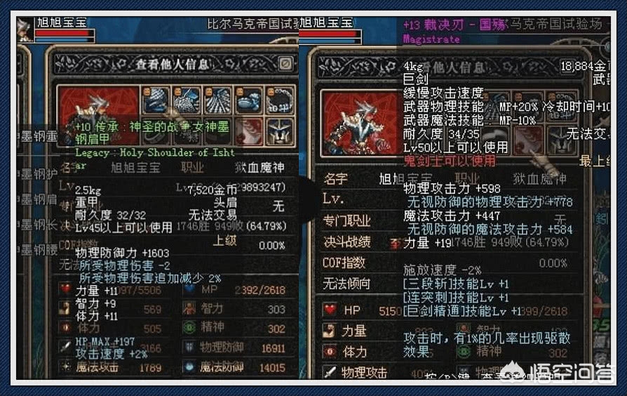 60版本的旭旭宝宝就已经很厉害了,一身+10的传承套,在当时这套防具就是现在超界的地位,手持+13的粉装。靠着这身装备,旭旭宝宝竞速各大高难度地图丝毫无压力。