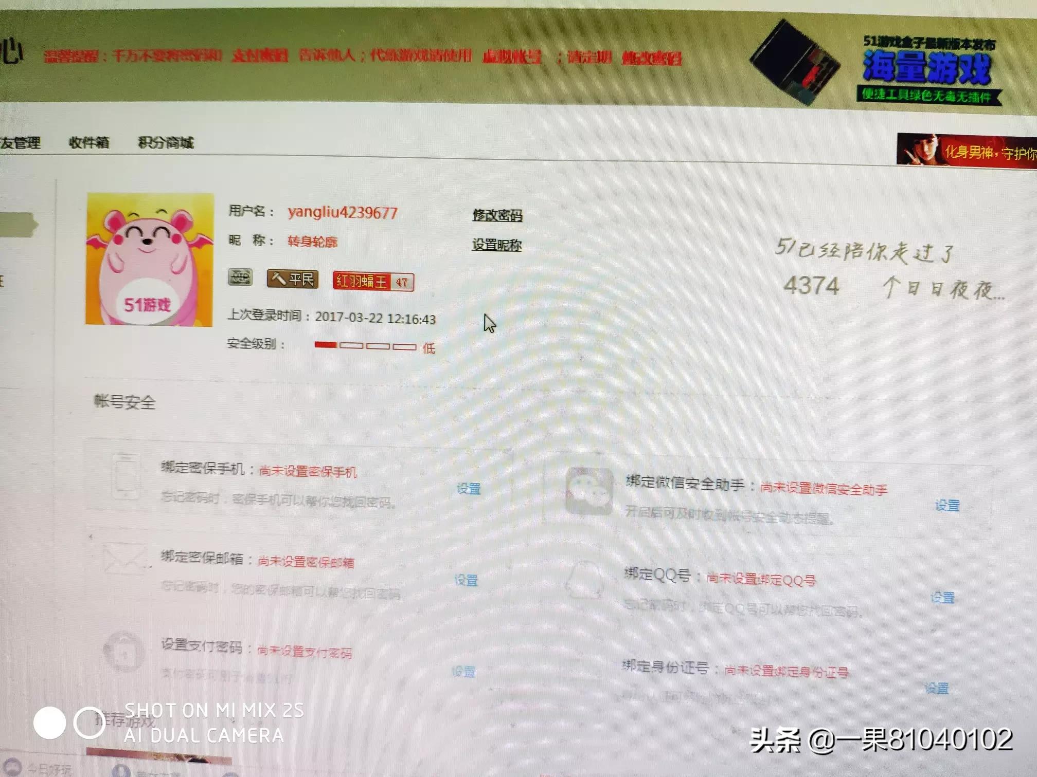 51什么时候出来的,我是不知道,我是2007年11月份注册的,那个时候的51就是社交博客,类似于qq空间一样。那个时候随便好多人都在玩,我为了升等级每天去网吧。51账号我现在还在用,那里面留着我所以回忆和所以前女友照片。除了我没人知道,偶尔还会去看下。对于我来说51就是现在自己唯一的一点不被人发现的秘密