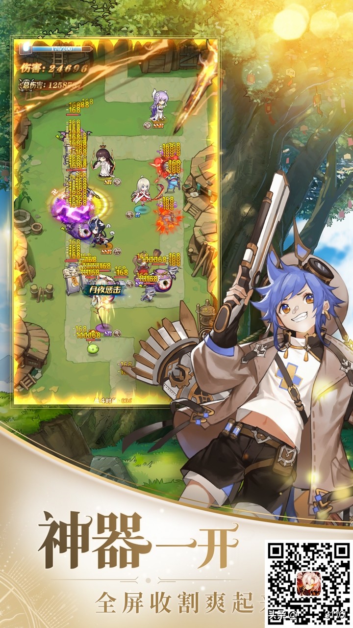 而且是双类型的,一种放置玩法,也就是没空的时候放着,有空就上去领一下资源和经验;一种塔防玩法,闲得慌的时候可以塔防闯关,和英雄之间的对战玩法,也有定时boss的那种,但是毕竟人性的有个挂机模式,设置好了,到点自己会打,手动参与也行。