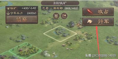 1、首先,我们要如图点击“行军”,选择地图上任何一块地都可以,目的就是为了了解占领的机制,但是需要注意的是,占领只能向自己或盟友又或者是同盟的俘虏的相邻地块才可以。