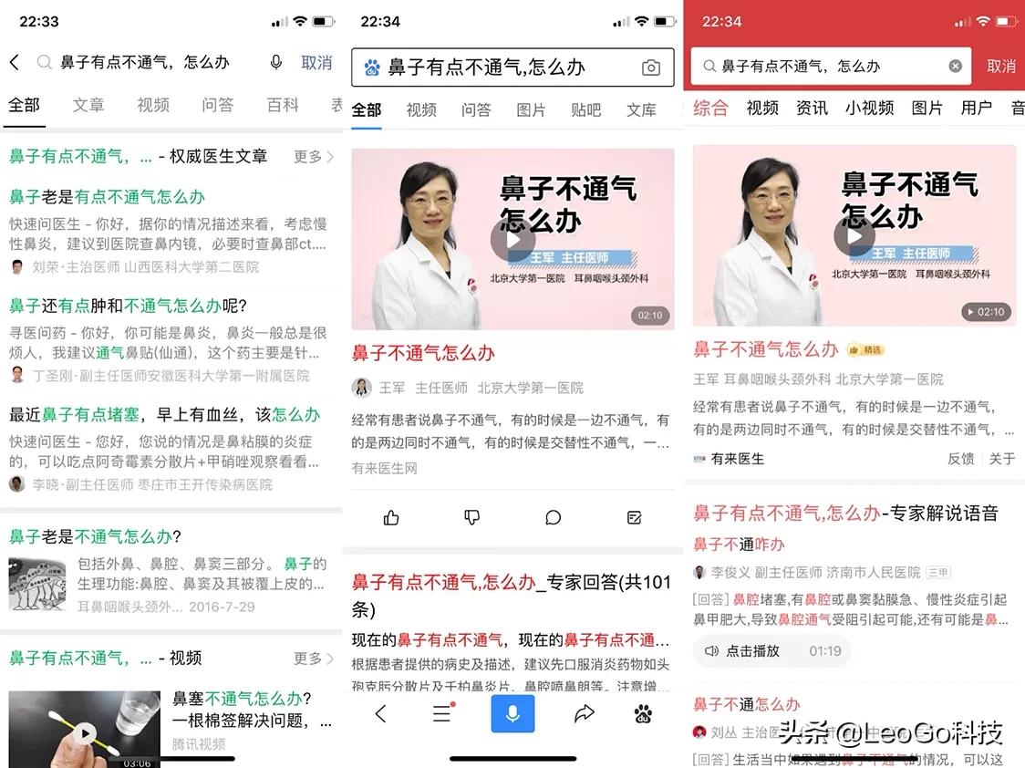 第二个:这方面表扬的是百度和头条,第1个出现了,鼻子不通气怎么办的视频能够更清晰的感觉到头条和百度的人性化。