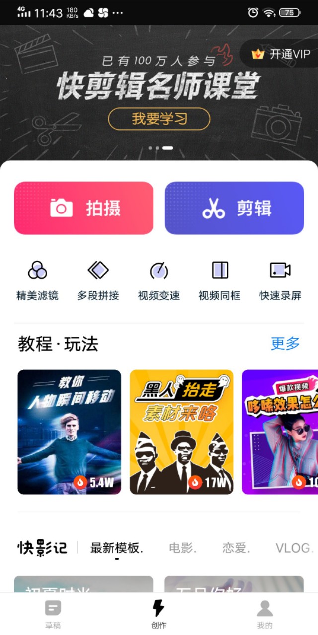 我刚看到你的这个问题的时候,我看到的是你要个影视剪辑app。这个我目前用的就是剪映和快剪辑两个软件。因为她们的操作都特别的简单,即便是你不会的,就是作为小白的你上手是比较快的。并且它上面还有对于这个软件的一些课程介绍。