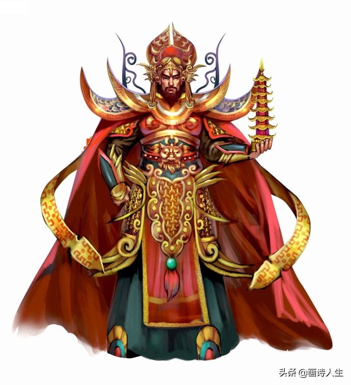 传说托塔天王的原型是来自南亚、西域的护军神毗沙门天王。传到我国之后,与唐代名将李靖相结合,便诞生了这位扬名仙界的军神。