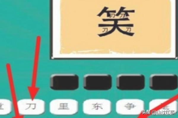 6、在下一题中,我们可以看见在笑字的里面藏有很多的刀字,我们可以理解为笑里藏刀。我们依次用鼠标的左键点击笑、里、藏、刀后,这一题就结束了。