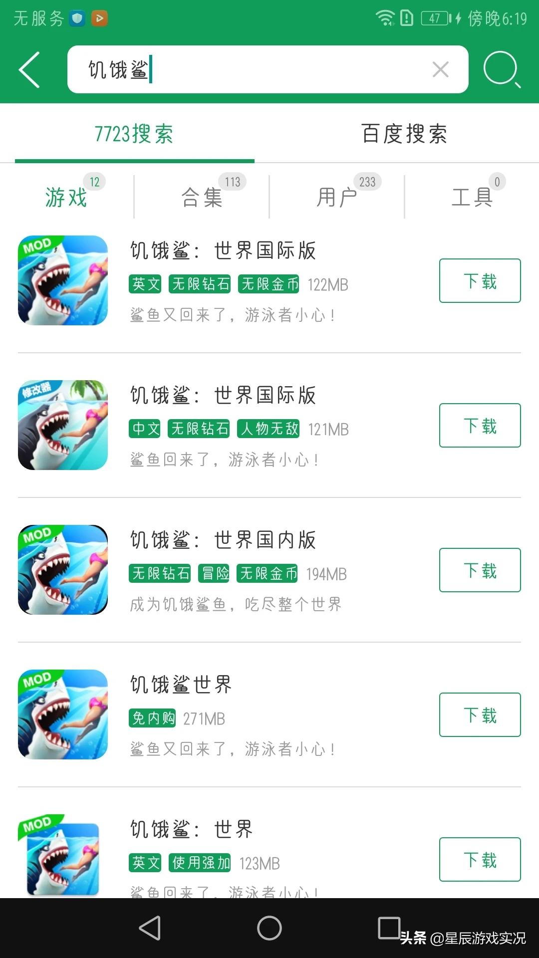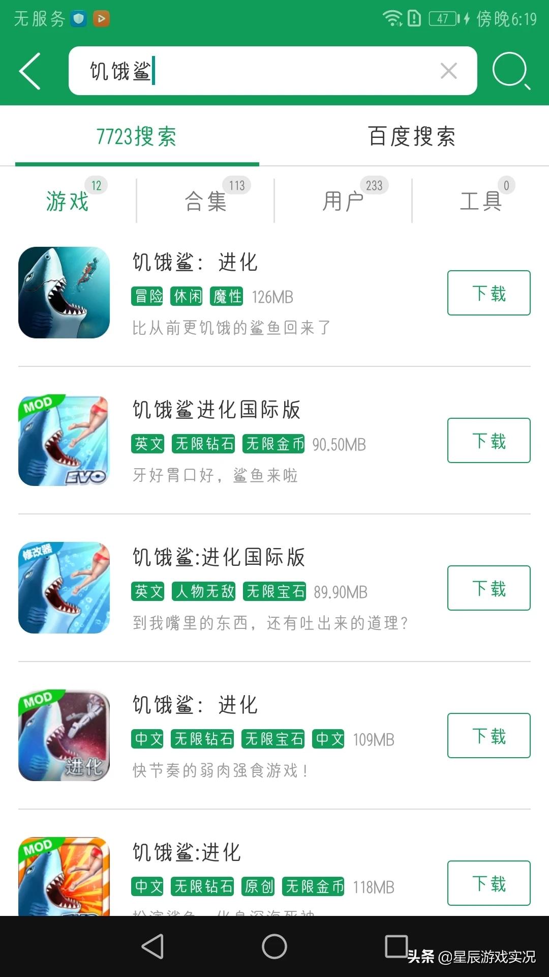 然后就可以下载了。里面有饥饿鲨世界和饥饿鲨进化的破解版,具体功能看小标签。