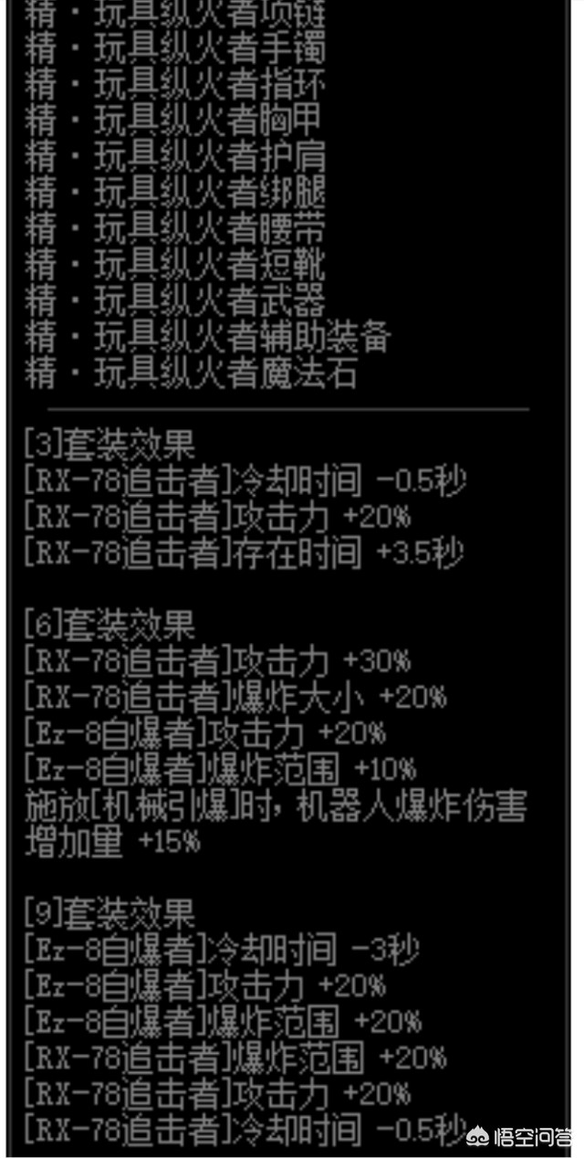 纵火9+游戏制作人,机械师搬砖的主流套装,主要加成追击者这个技能,技能伤害和范围超大,几乎无冷却。