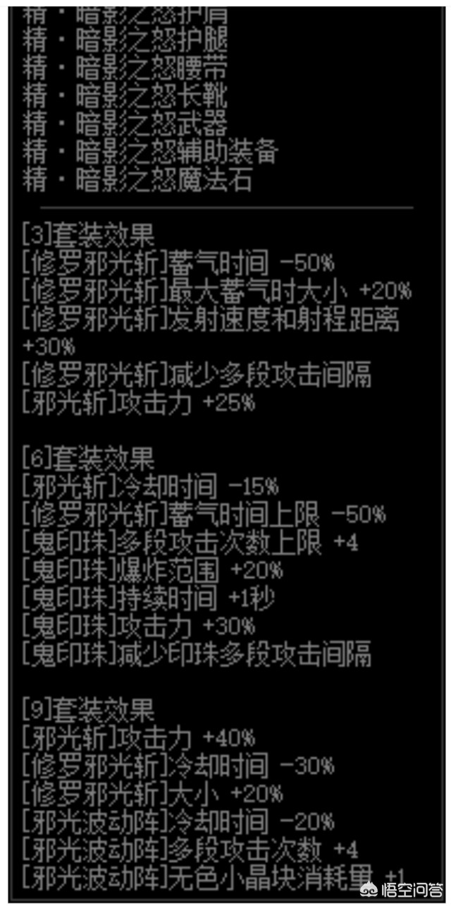 暗影之怒+天道修罗剑,修罗是公认的白图之王,暗影之怒更是修罗搬砖的不二之选。主要加成邪光斩这个技能,基本上一个技能一个房间。没有什么是一个邪光斩解决不了的,有的话就两个。
