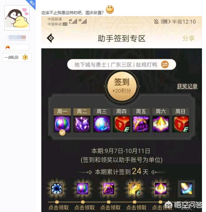 DNF玩家发现助手疑似出现国庆彩蛋,签到专区的奖励可重复领取,真的是这样吗