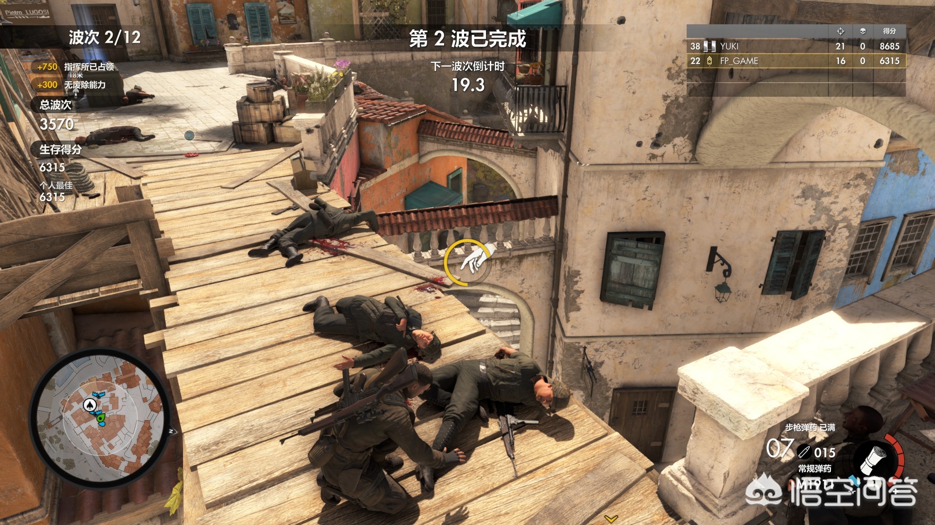初级难度下,可以被引爆的地方都会有色彩标注,士兵也会显示距离,瞄准时,会有提示的准星,来帮助玩家进行瞄准,可以说在低级难度下,《狙击精英4》更像是一款欣赏击杀慢动作的游戏。