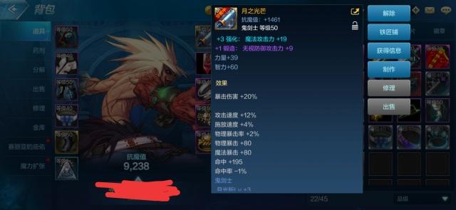 不过这个属性可是非常的不错呀,一眼就看到暴击伤害+20%,这可是比端游的月之光芒强多了,端游的只是加了5级的月光斩,还有就是月光斩、暗月斩CD-1S,疾影斩CD-1.5S罢了,手游的这把也加了3级的月光斩,还有很多的速度,但就是20%的爆伤就完爆了端游的了。看起来还是蛮有意思的,期待正式上线的那一天吧。