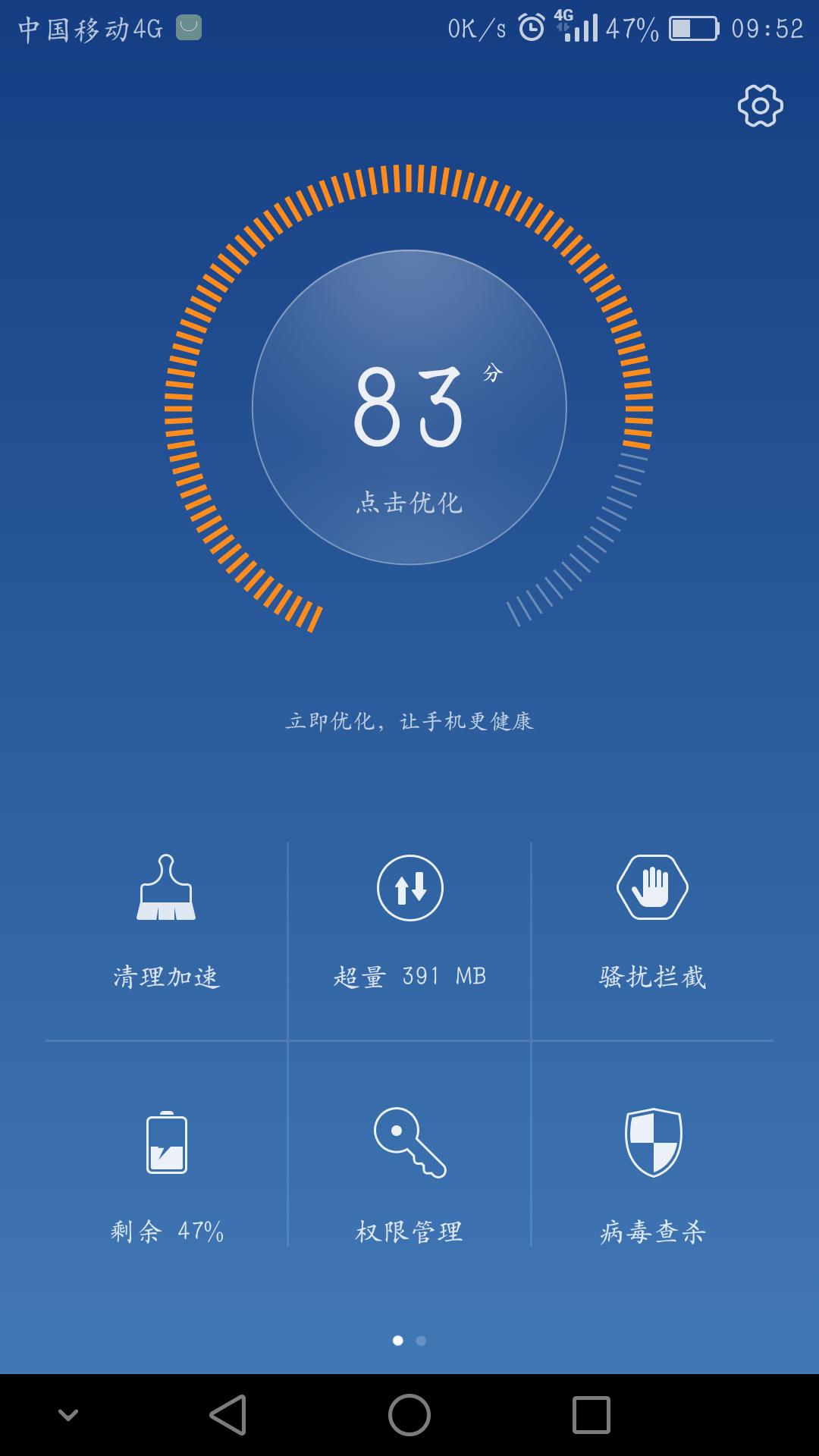 本人之前用的是小米2A,从来就没用过其它的手机管家,一直用的是小米自带的,现在用的是华为荣耀7也是安装的自带的管家,这么做的原因就是因为安装其他的管家会占用內存,其次就是其他的第三方管家研发的初衷就是为了市面上所有的手机,并不是针对某一个系统特定而研发的,而手机自带的管家则是针对某一款手机系统研发的,所以他们清理系统垃圾能够清理的特别彻底!(个人观点,不喜勿喷) 华为荣耀7自带的管家