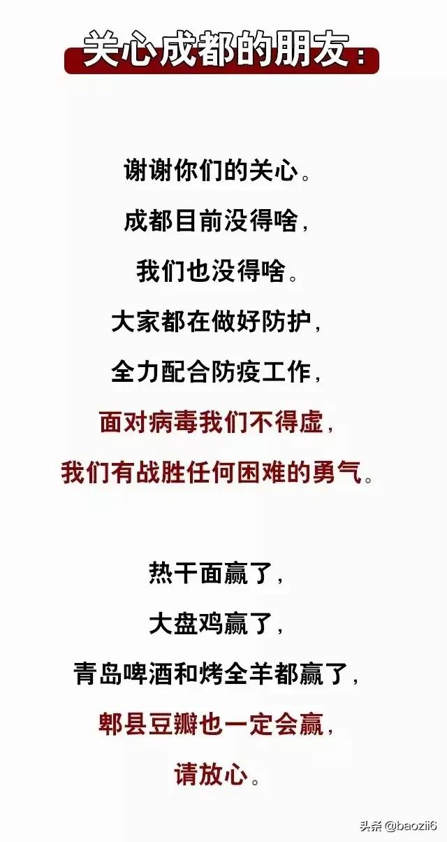 如果你在成都,把心放肚子里该吃吃该喝喝,出门记得戴口罩,回家记得勤洗手。