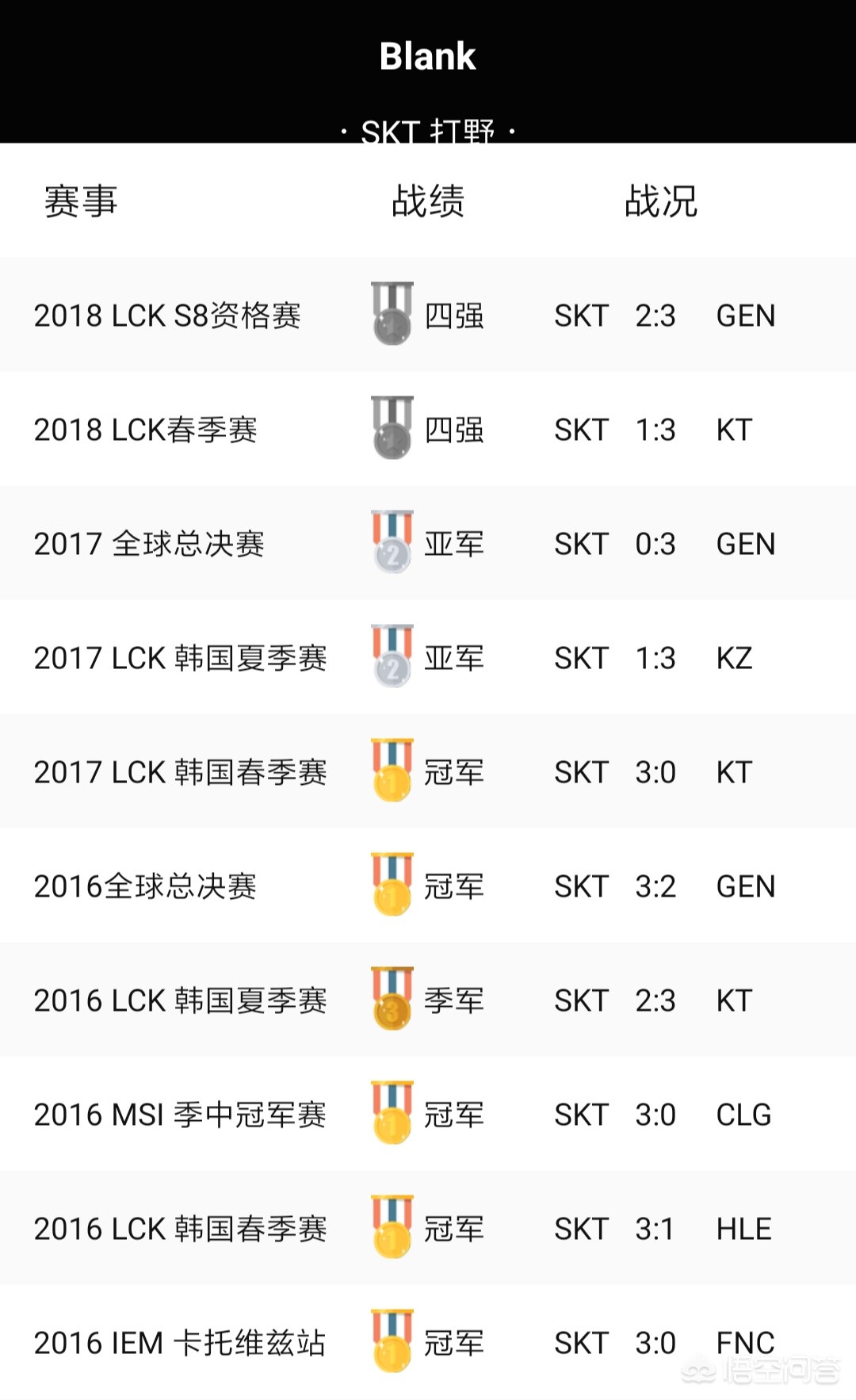 LCK赛区本赛季SKT战队再次回到巅峰,全新的阵容击败GRF夺得冠军,时隔一年再次来到世界赛的舞台上。S7世界赛,SKT在决赛不敌三星,遗憾失冠,Faker当场痛哭也让很多玩家动容。S8赛季,SKT迎来低谷,Faker被称为孤儿院院长,自己一度状态起伏也很大。整个赛季,SKT没能取得成绩,没能站在世界赛的舞台上。队内上野实力太差,尤其打野小黑,并不是一位新人打野,但是在比赛中的表现却让人哭笑不得。直到现在,我依旧记得小黑的巨魔将Faker坑死。新赛季,SKT也是重新洗牌,队内七人离队。Bang加盟北美100T战队,辅助Wolf来到土耳其赛区,离队的选手中只有打野Blank没有加盟其他队伍。