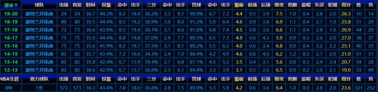上图是利拉德的数据表现,利拉德的三分球命中率保持在36%左右,出手次数增加到8-9次,在联盟中属于优秀水平。