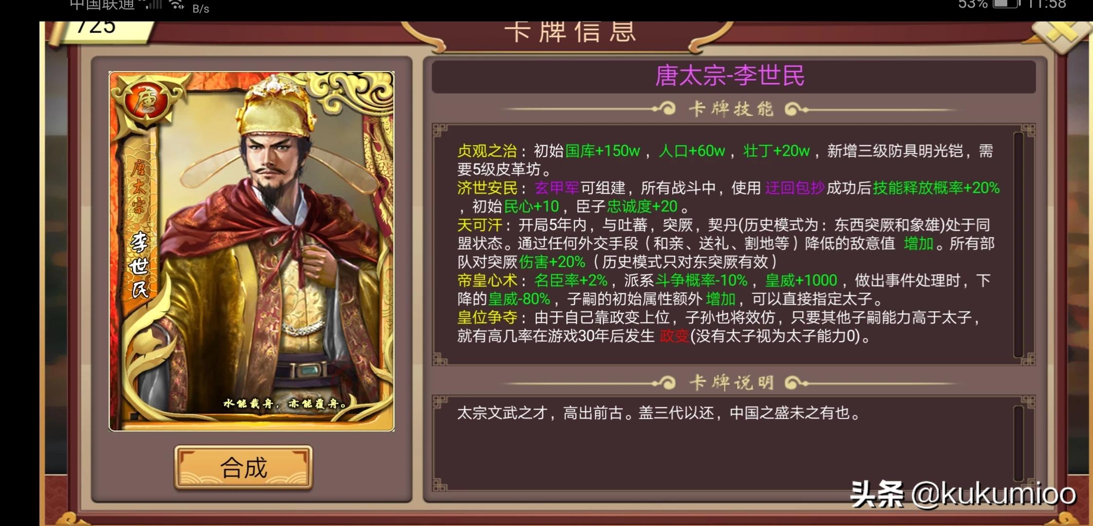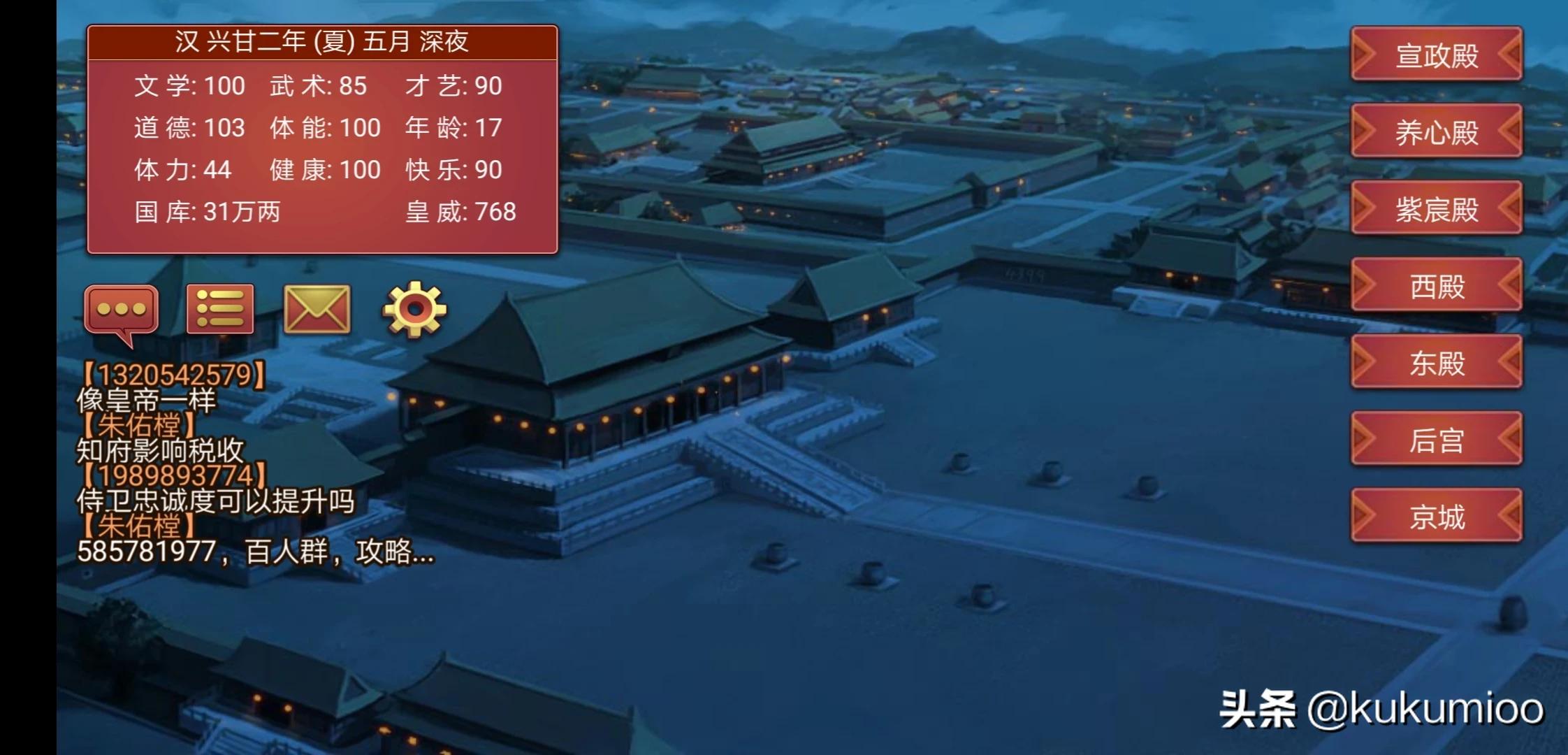 该游戏是一款单机养成类游戏。游戏中玩家需要发展经济,收录名臣,发展军事,发动战争,寻找妃子,培养女儿,处理朝政,自由度极高。还设计了丹药系统,反叛机制,当各地民心降低时候会加大叛乱概率,一些官员道德低野心高时候会谋反。东厂负责调查各种事物,皇帝本人也拥有各种属性,游戏中开发团队还设计了各种帝王卡牌,策略卡牌,每张卡牌里面都有附属的效果,有好处也有弊端,这是和各个朝代的重要历史事件相关的,模式中有一种模式叫做历史模式,把玩家带入浓厚的历史时代感中,地图是选中的帝王那个朝代的世界地图,各国之间的关系也是因朝代而改变,外交,贸易,联姻,臣属等机制也在游戏设计之中。玩家要兼顾大局,发展经济是首位,然后修建各种建筑(每个建筑都有自己的附加效果),扩大加上军事实力,对外贸易,对外扩张,后宫收纳名妃,处理妃子之间的弹劾,前朝需要查处贪官污吏,广招名臣,预防党派叛乱等等,总之该游戏自由度极高,喜欢经营策略类游戏的小伙伴可以尝试一下!