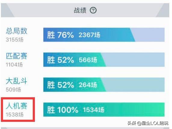 其实这样的玩家可不在少数,有很多玩家是专注于人机,打几千场也是不在少数。
