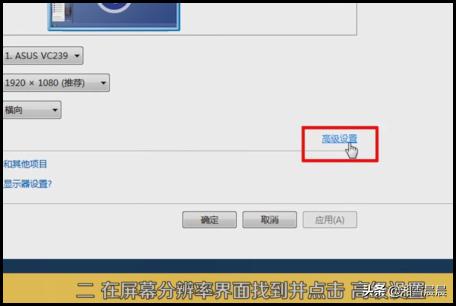 2、在屏幕分辨率界面找到并点击“高级设置”。