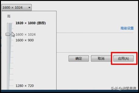 5、然后返回了屏幕分辨率的界面,在“分辨率”一栏适当调整一下分辨率,然后点击下方的“应用”即可完成调整。