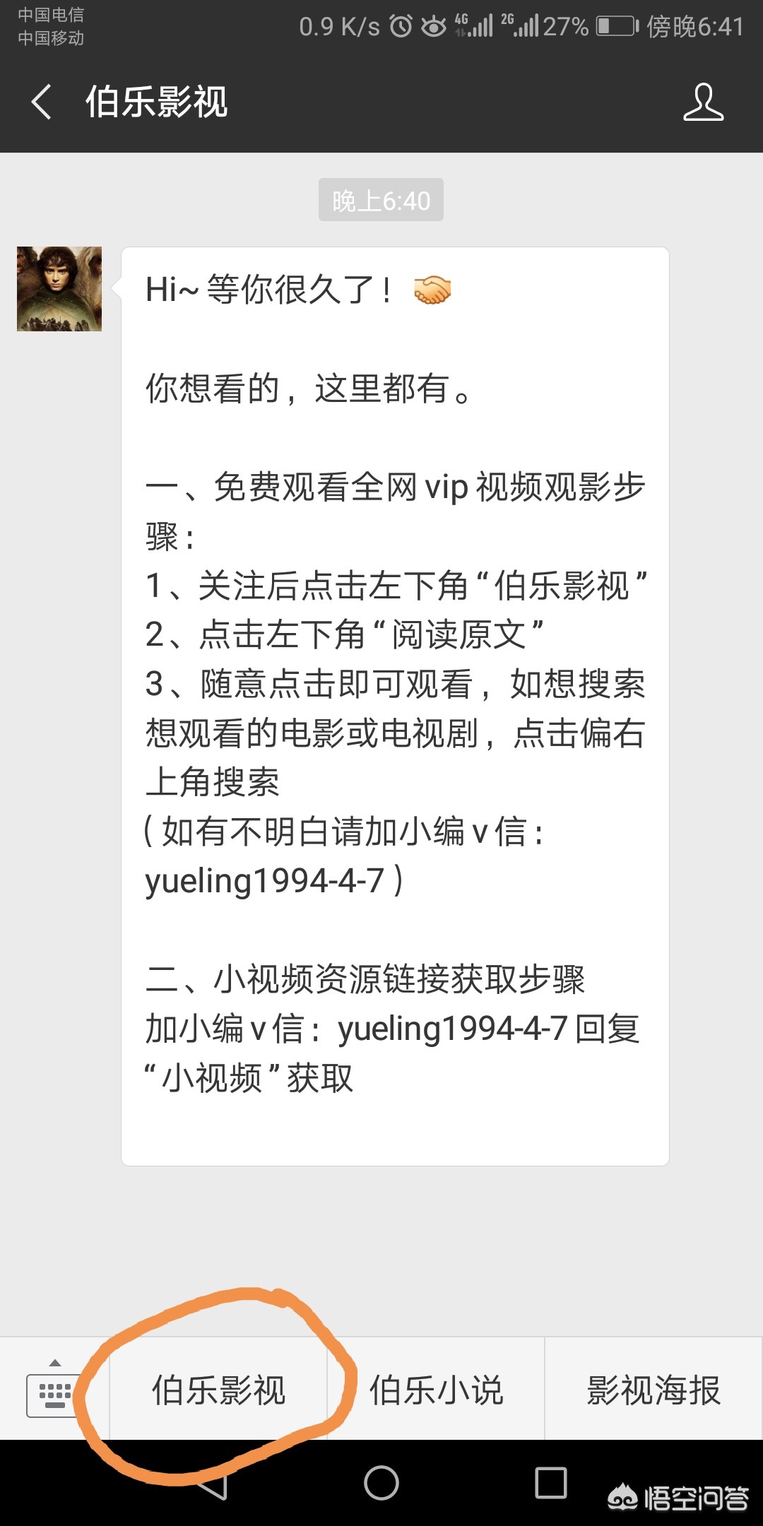 (PS:点击微信右上角搜索按钮搜索关注公众号“伯乐影视”即可)