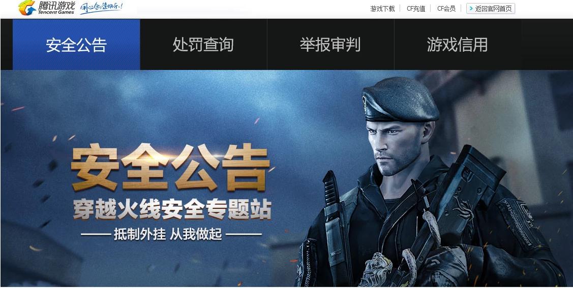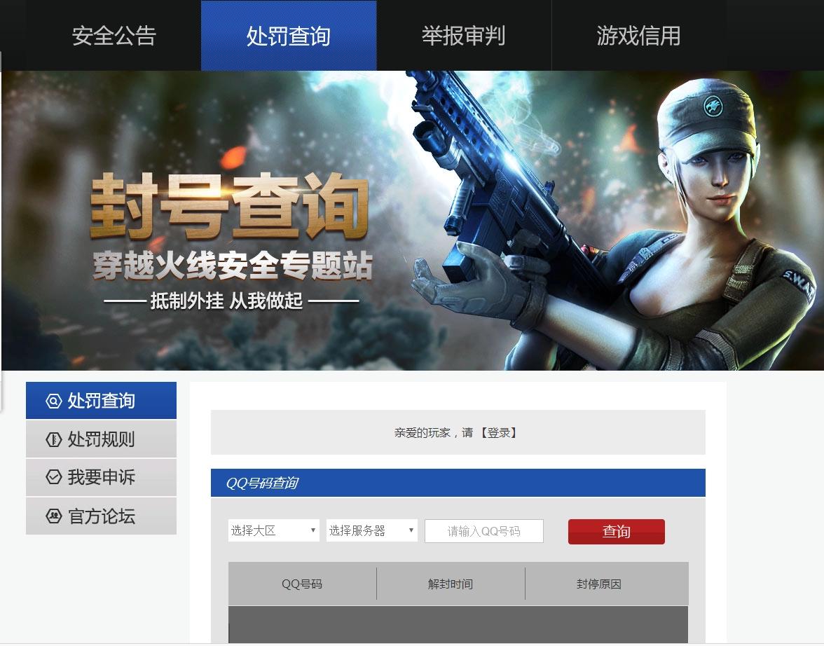 1、据了解玩家查看穿越火线排位被禁赛的情况,玩家首先需要进入穿越火线官网后,然后点击右上方界面的安全专题站,登录要查询的账号,即可查询处罚情况。