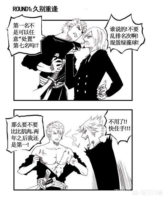 索隆和山治一直以来都是死对头,一直斗嘴,互相,索隆实力我就不说了,草帽海贼团副船长嘛,而山治在大妈篇却没什么突出的实力变化,期待时候山治的突飞表现了。比比肌肉还是比较具有趣味的。。。