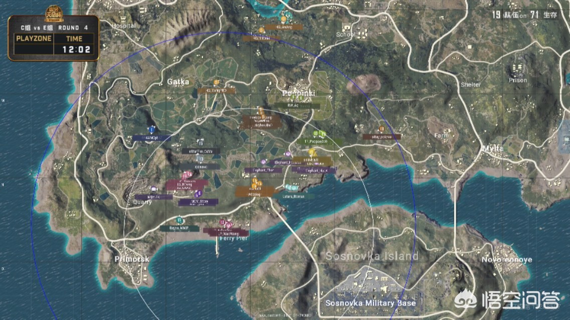安全区刷在了海边,海边形成了四足鼎立的局面,左上是Elephant,右上是4am,中间是WAY,右下是AG。