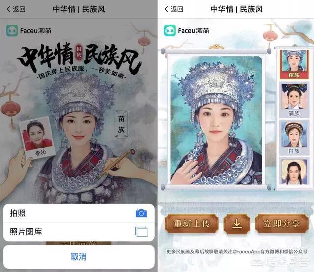 Faceu 激萌 曾在朋友圈火爆过,但真正留下印象是在 17 年的国庆期间。当时其搞了“中华情 民族风”的营销活动,让用户上传正脸自拍照,即可与画师绘制的民族服装相融合,浓浓的民族复古风很唯美。