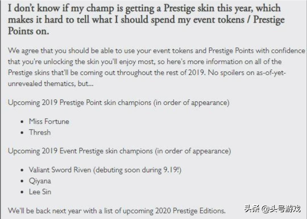 这一次的拳头公司也是下定了决定,从明年也就是2020年开始,每年的年底会有一个至臻商店的开放。拥有至臻币的玩家可以通过商店来兑换自己想要的一款皮肤。这样一来也大大提高了玩家们花钱和做任务的数量,毕竟不是每一款这件皮肤都能受到玩家们的喜爱,很多英雄甚至玩家不会操作和使用。如果让玩家们任意挑选,那么充钱、肝游戏的几率也就大了许多。不得不说,拳头此举也算是满足了玩家愿望和自身利益的双重保障。