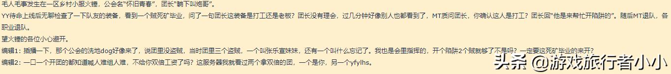 而为什么这个金团还要组这样的盗贼号当打工呢?其实熟悉的玩家都懂,要么是亲友号带着一起赚打工的钱,要么是单独给过团长金币想进来买BWL的装备一步到位以后自己开新团,总之就是希望短时间能够拿到差不多的装备然后摇身一变成“高端玩家”。