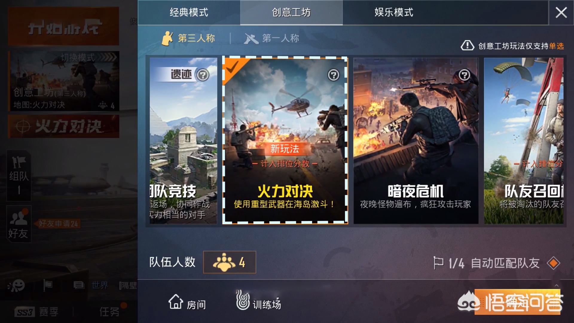那这三个新模式和以外有什么区别,因节日而更新经典随机模式就不多做介绍,只不过这模式比较合适小情侣玩,里面可能还会出现秋千等互动性的道具,而战术团队竞技,可以算是对仓库团队竞技一次升级,新地图也要比仓库图大,不过现在让玩家喜欢的还是“火力对决”这个模式。
