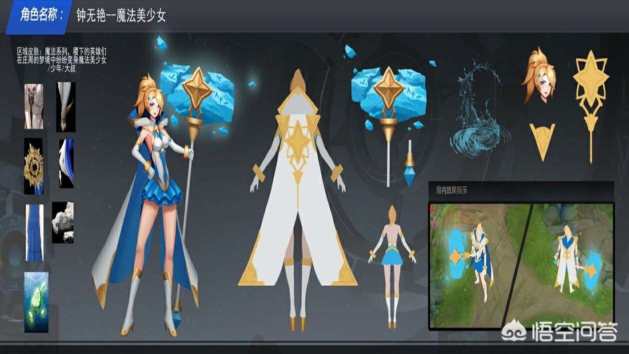 第五款皮肤就是钟无艳的魔法美少女,钟无艳变得更加萝莉了,变成了一位很好看的美少女,再也不会有很多玩家称这个英雄是一位比较苍老的女人,颜色主要就是蓝色和披风非常好看!