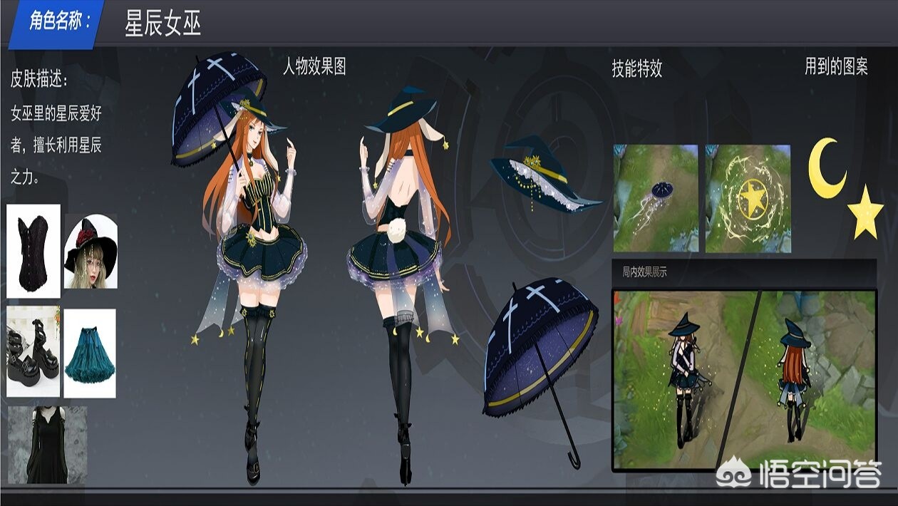 第三款皮肤也是公孙离这个英雄的皮肤,公孙离变成了女巫,穿着方面主要是以黑色为主,尤其在标记方面主要有月亮和星星的标记,还有一些繁星在他旁边点缀着,而对这款皮肤小编个人觉得绝对是一位非常美丽的女巫,因为那长长的染色的头发还有那大长腿,看起来非常的凹凸有型,可以说别有一番风味。